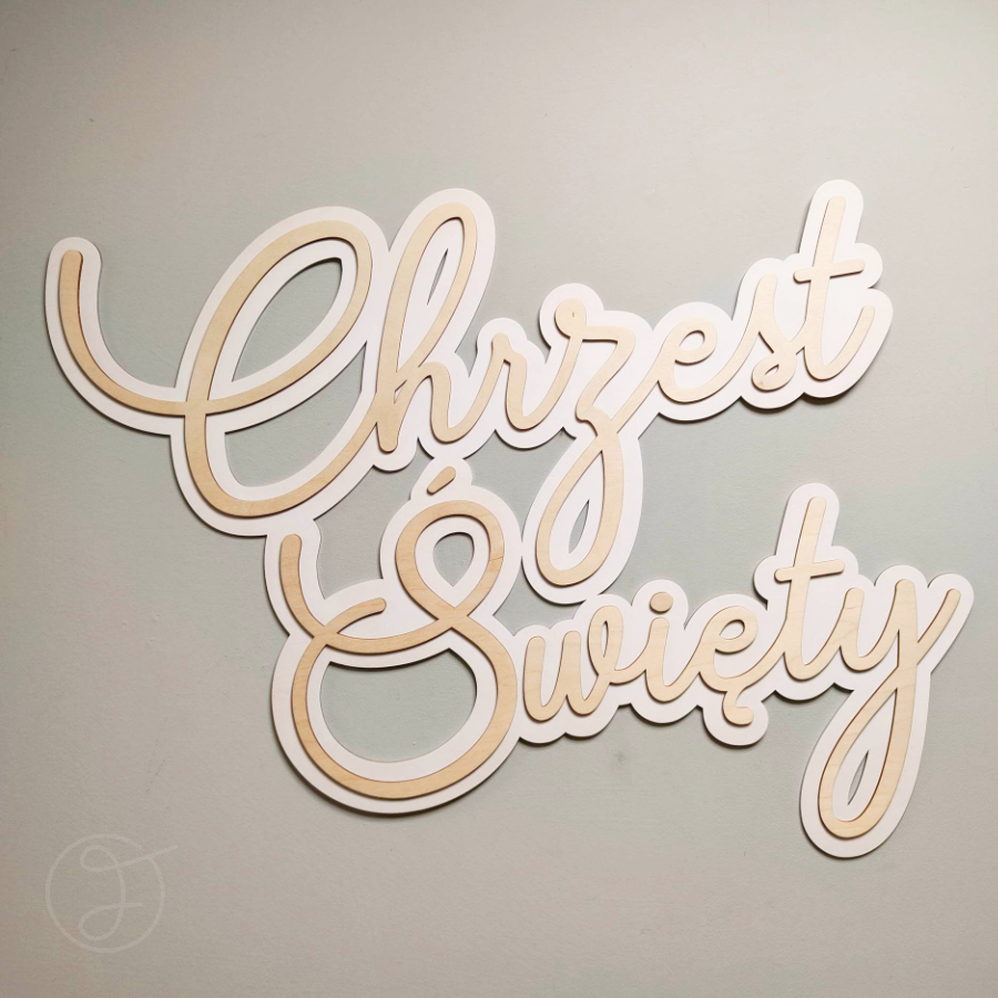 Chrzest Święty III - drewniany napis 3D, 85cm, naturalny - biały