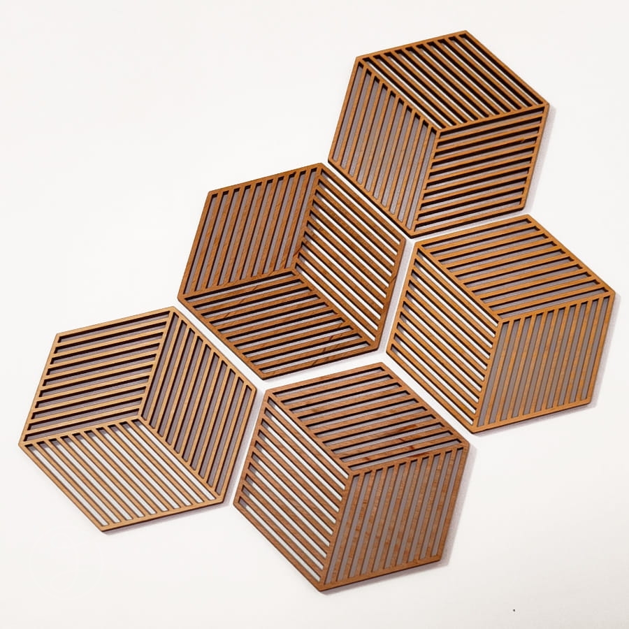 Podkładki pod szklankę czy kubek idealnie sprawdzą się w formie prezentu. Wzór cubic zachwyci swoja prostotą i nowoczesnością.