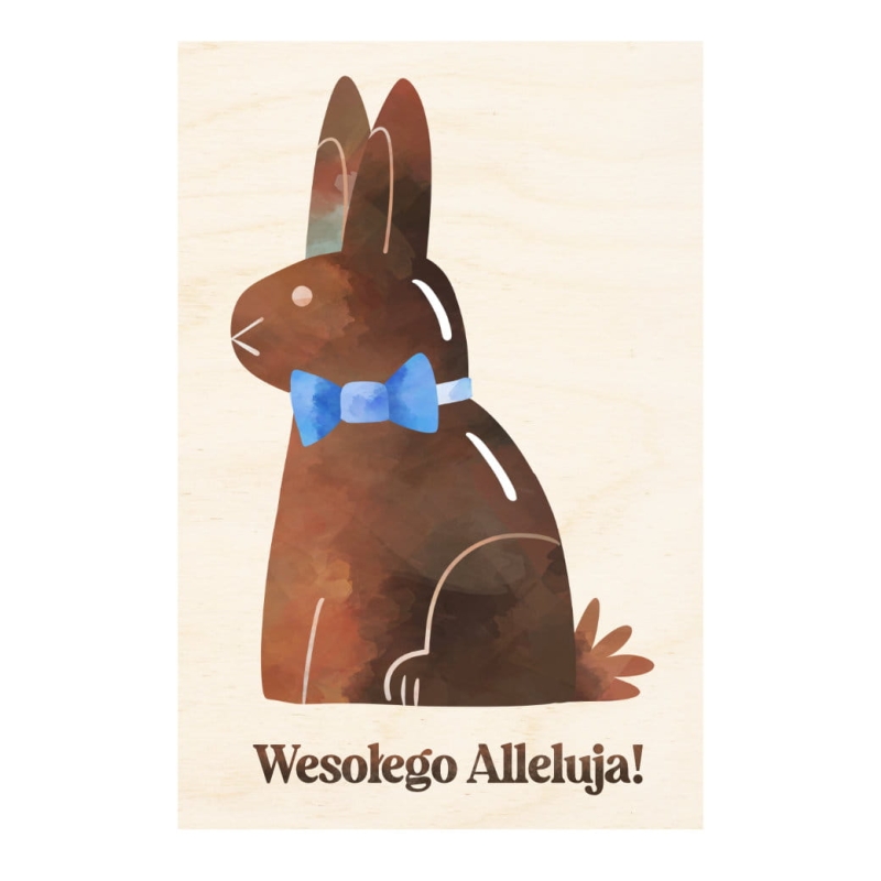 Czekoladowy zając - drewniana kartka wielkanocna