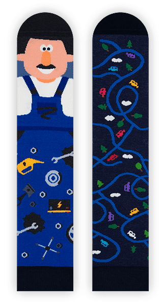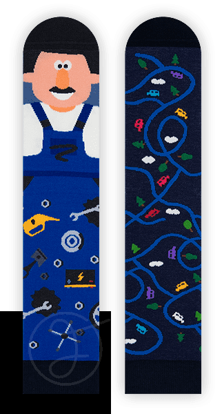 Żaden pojazd mechaniczny nie ma przed nim tajemnic! Mechanik z powołania! Niezwykle zabawne skarpetki z serii Happy Friends from Work od Nanushki poprawią humor największemu smutasowi na świecie. Żywe kolory i oryginalny wzór będą idealne zarówno na co dzień jak i na szaloną imprezę! Skarpetki posiadają całkowicie wolne od szwów łączenie skarpet nad palcami. Gwarantuje to pełną wygodę, nie powodując ucisku i otarć nawet dla najdelikatniejszych stóp. Wysokiej jakości materiały użyte do produkcji skarpetek pozwolą cieszyć się nimi przez bardzo długi czas!